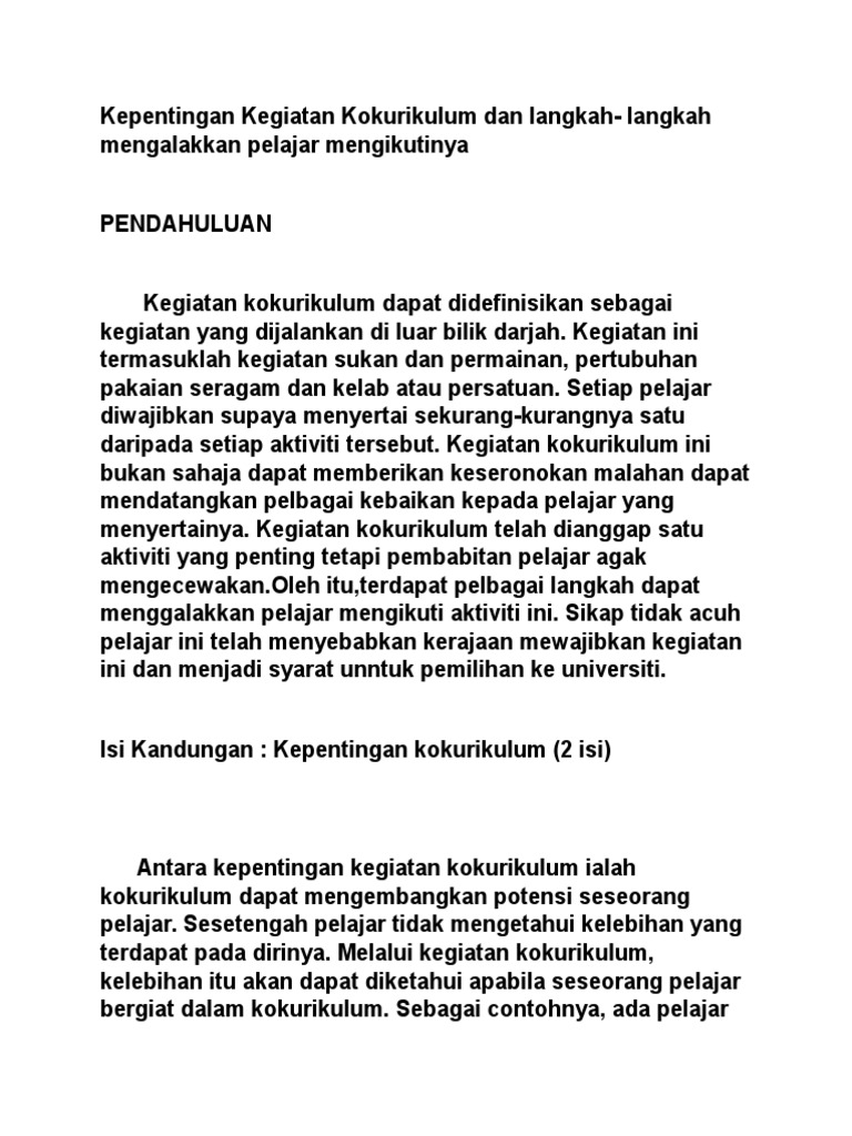 Contoh Isi Karangan Kepentingan Kokurikulum